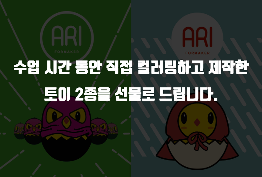 -수업 시간 내 직접 디자인하고 제작했던 토이2종을 3D 프린터로 출력해 제공해드립니다.