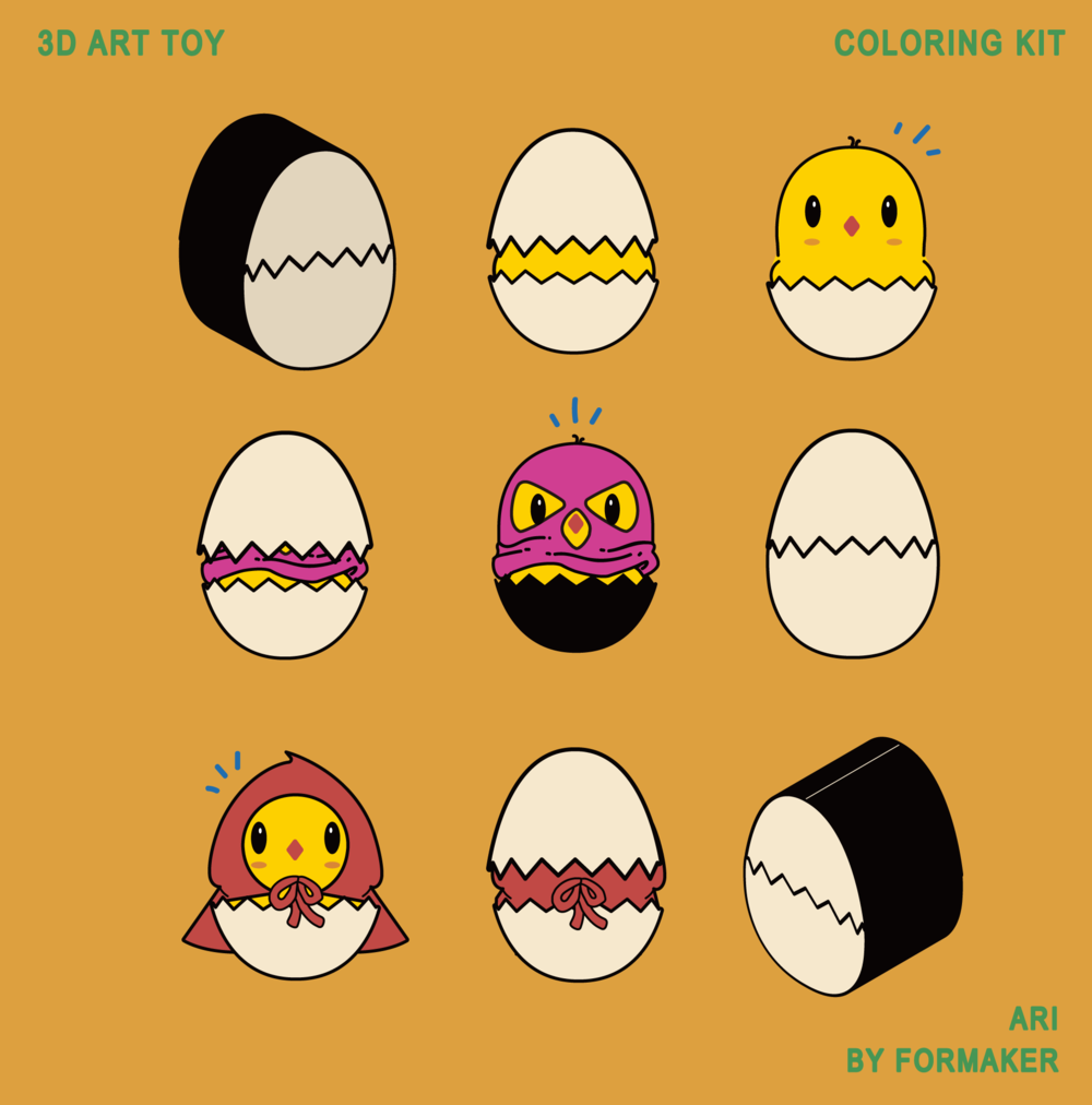 컴퓨터로 디자인하고 3D 프린터로 출력하고 아크릴 물감으로 색칠만 하면 나만의 아트토이가 완성된답니다.