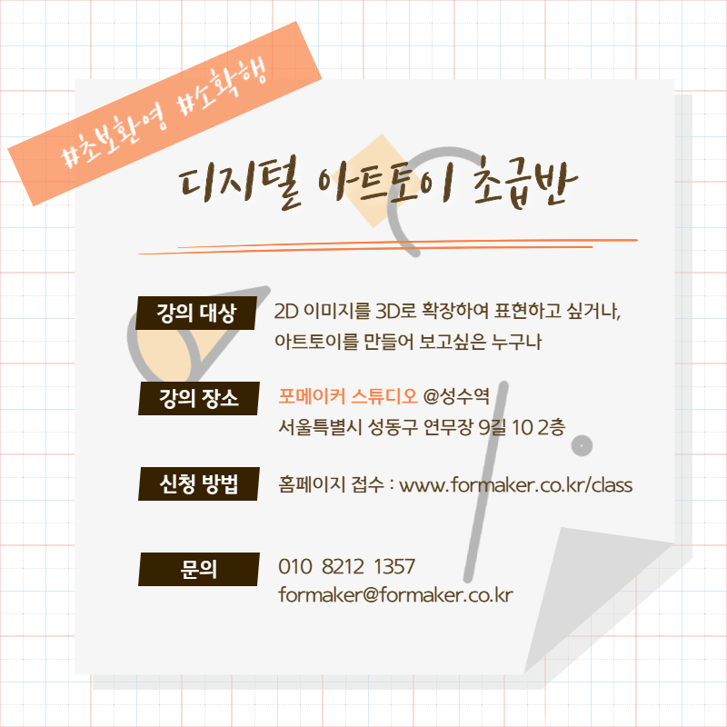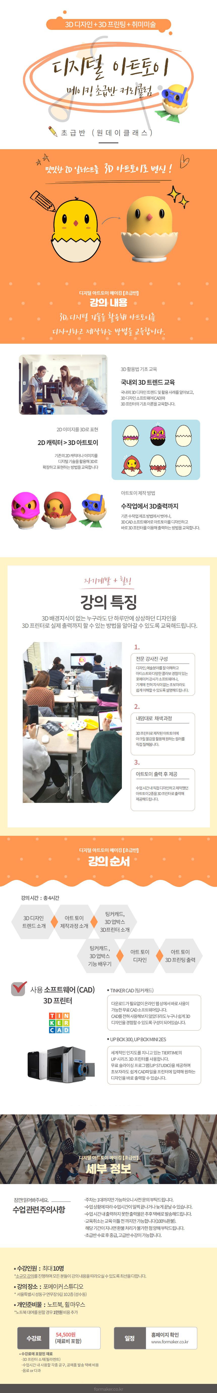 초급반 하루만 들으면 위와 같은 귀여운 2D 이미지를 직접 3D로 디자인 히고,
