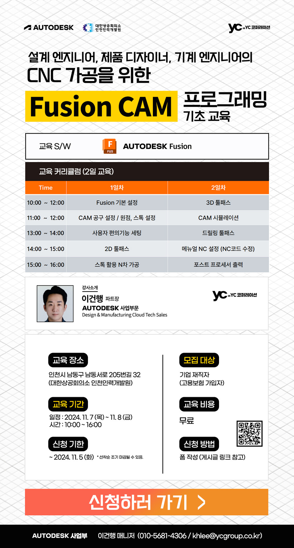 오토데스크 퓨전(Autodesk Fusion)을 통한 CAM 기능 교육을 진행합니다. *이틀 교육