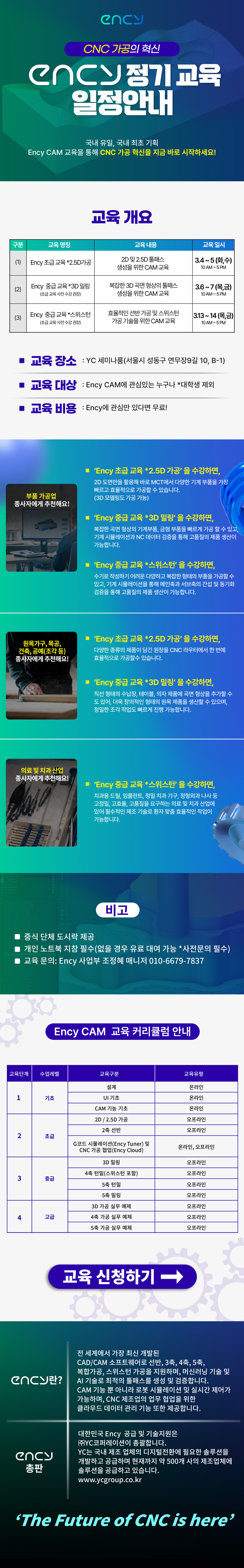 전 세계에서 가장 최근 개발된 CAD/CAM 솔루션 Ency CAM 오프라인 교육이 진행됩니다.